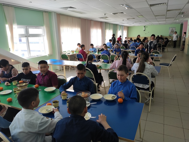 Двухразовое бесплатное горячее питание получают 100 процентов обучающихся МБОУ «ШИ с.Омолон» на сумму 355.00 рублей. Большое значение имеет режим питания. Для каждого класса выделяется определенное время посещения столовой. Продолжительность перемен, во время которых питаются учащиеся, составляет 10-20 минут, что достаточно для нормального приёма пищи. За каждым классом в столовой закреплены определённые обеденные столы.