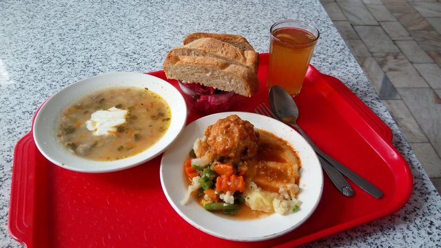 Школьный обед содержит большее количество блюд. Учащимся предложена закуска, причем в данном случае предпочтительнее всего легкий овощной салат, возбуждающий аппетит. На первое предлагается горячее жидкое блюдо (борщ, суп любого вида, щи, рассольник). На второе блюдо мясное или рыбное, либо из птицы. В качестве гарнира использована рисовая, гречневая, кукурузная каша, макароны различных сортов, картофель или картофельное пюре, овощное рагу.