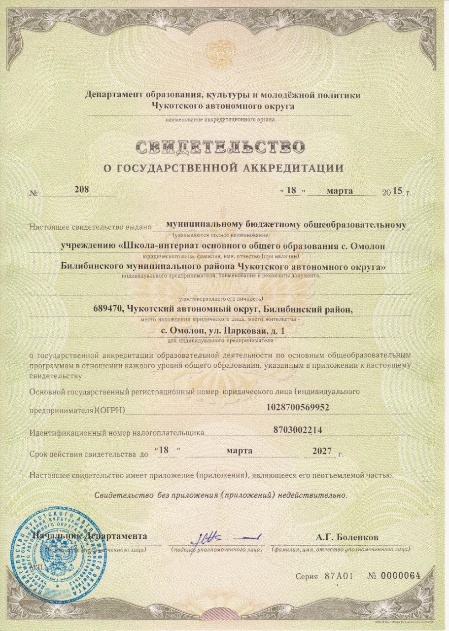 Срок действия свидетельства до 18.03.2027 года. Реквизиты свидетельства о государственной аккредитации